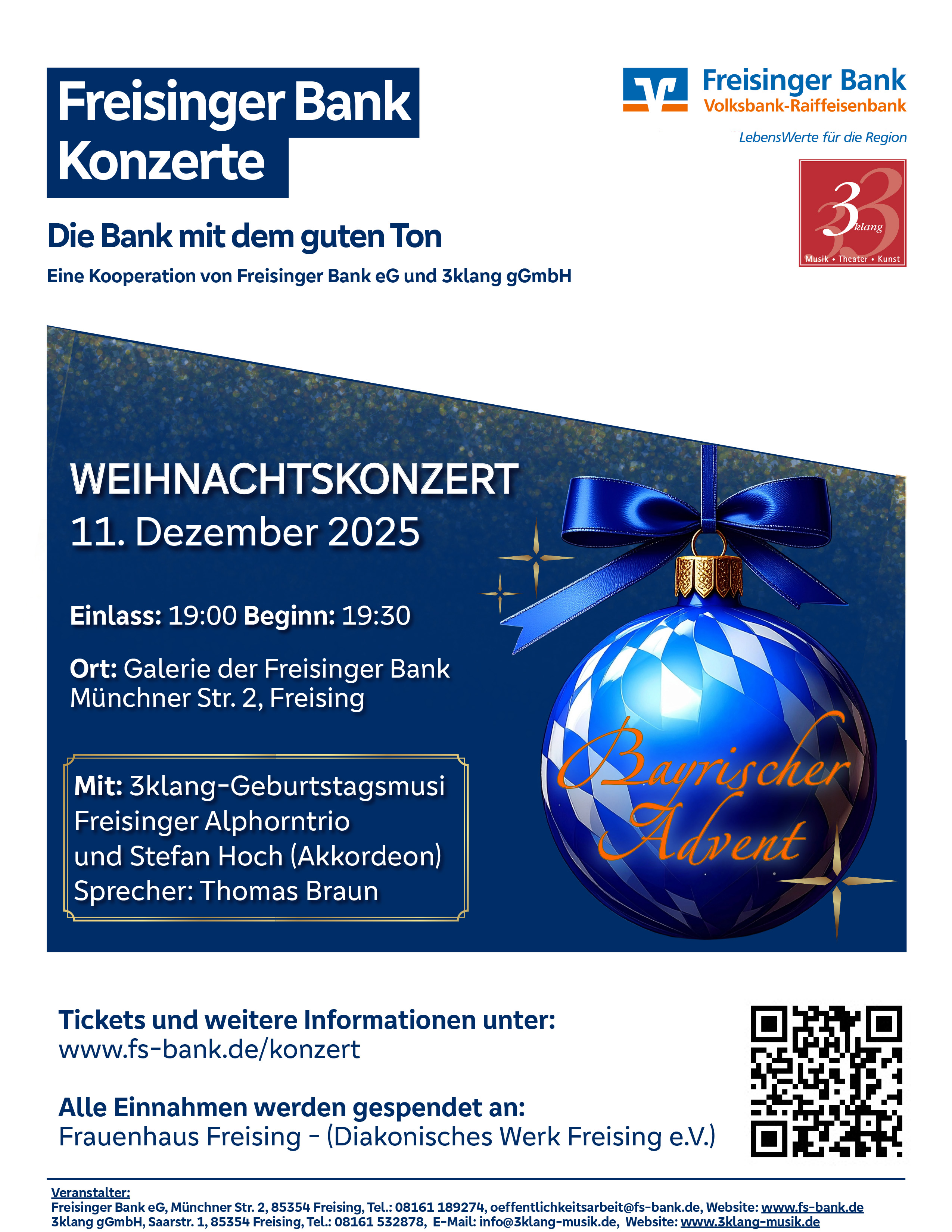 Beratungsstandorten der Freisinger Bank. Der Vorverkauf beginnt 2 Wochen vor dem Veranstaltungstermin