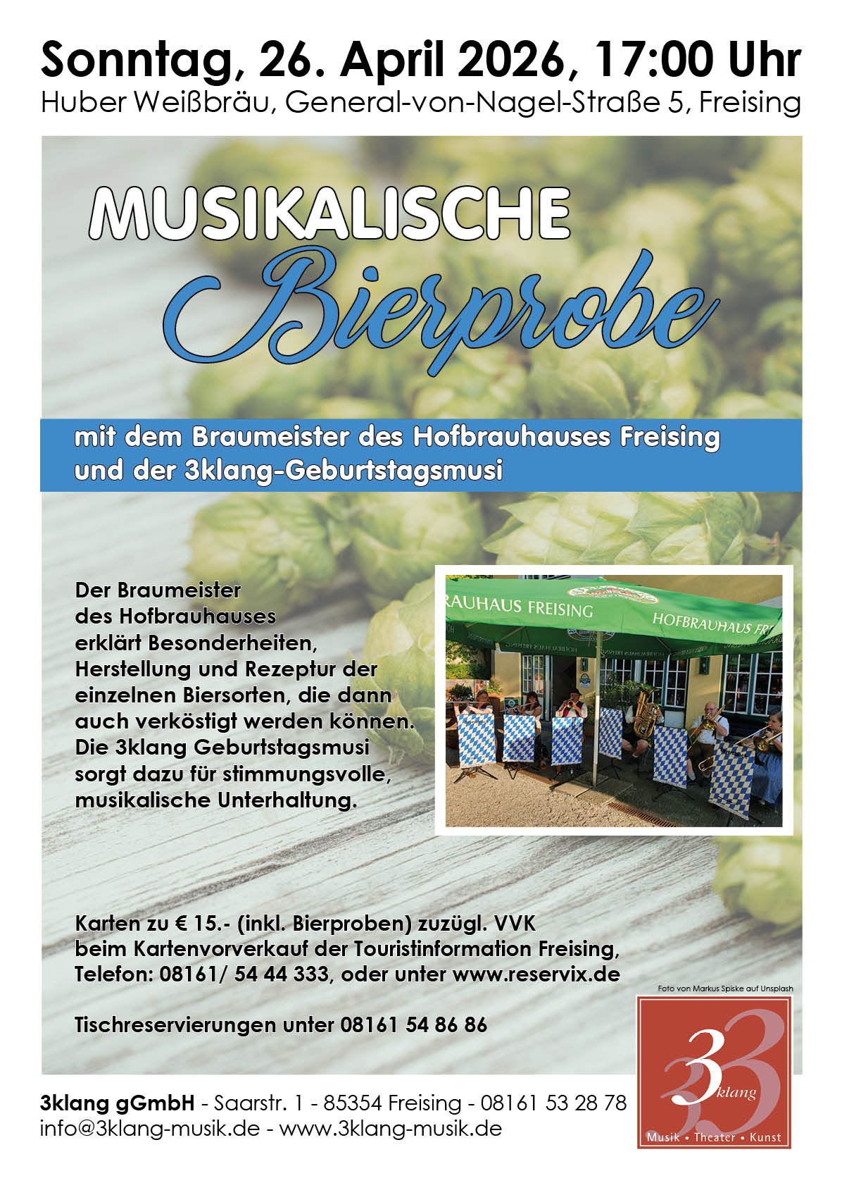 Karten zu € 15.- (inkl. Bierproben) zuzügl. VVK beim Kartenvorverkauf der Touristinformation