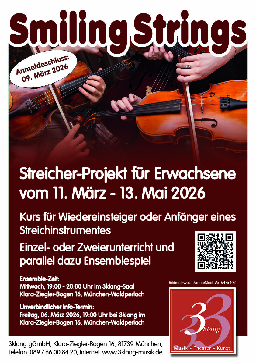 Unverbindlicher Infotermin: Freitag, 6. März um 19 Uhr bei 3klang im Klara-Ziegler-Bogen 16, München