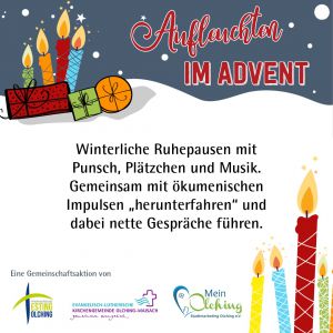 Am Mittwoch 17. Dezember 2025 lädt Sie 3klang um 18 Uhr zum Aufleuchten in den Amperhof, Adlerweg 15, 82140 Olching ein.