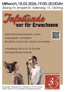 Anmeldung: 08142 41 00 36 oder olching@3klang-musik.de