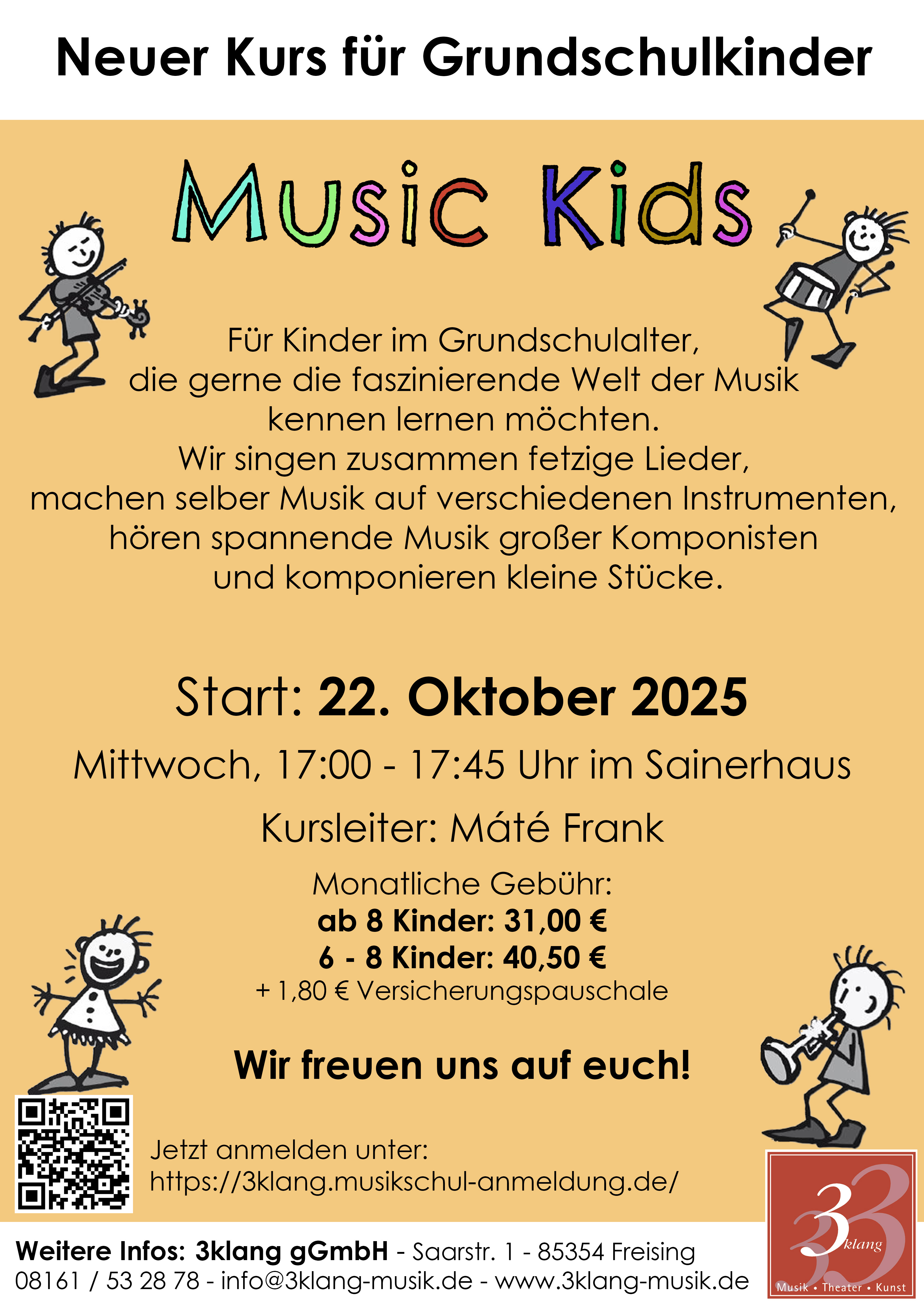 Anmeldung unter 08142 41 00 36 / olching@3klang-musik.de
